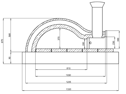 | Kompletný rozmer pece s doskou: | v-š-d, - 670 x 1080 x 1330 mm |